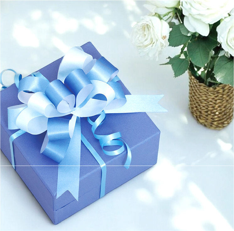 紐を引くだけで簡単にキレイに豪華なボウが出来上がります。