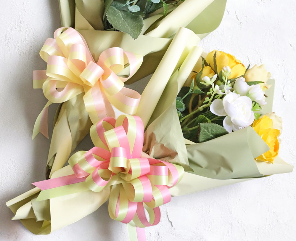 花束や胡蝶蘭などの鉢植えラッピングには欠かせないリボンボウ。